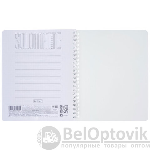 Тетрадь А5 формата, 96 листов. Материал обложки – мелованный картон. Вид отделки – ламинация Soft-touch. Внутренний блок – офсетная бумага 65 г/м2, клетка. Тип скрепления – гребень.
