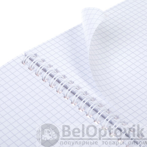 Тетрадь А5 формата, 96 листов. Материал обложки – мелованный картон. Вид отделки – ламинация Soft-touch. Внутренний блок – офсетная бумага 65 г/м2, клетка. Тип скрепления – гребень.