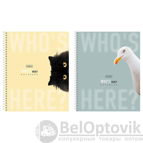 Тетрадь А5 96 л., HATBER, спираль, клетка, матовая ламинация, "Кто здесь?" (микс в спайке), 093670, 96Т5лВ1сп