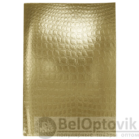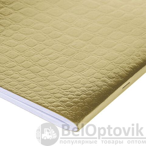 Тетрадь А4 формата, 96 листов. Материал обложки – бумвинил, ЗОЛОТО, "Metallic", дополненная спецэффектами в виде тиснения CROCO. Внутренний блок – офсетная бумага 60 г/м2, клетка. Тип скрепления – скоба.