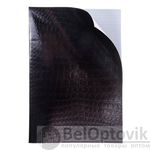 Тетрадь А4 формата, 96 листов. Материал обложки – бумвинил, "Metallic", чёрная, дополненная спецэффектами в виде тиснения CROCO. Внутренний блок – офсетная бумага 60 г/м2, клетка. Тип скрепления – скоба.