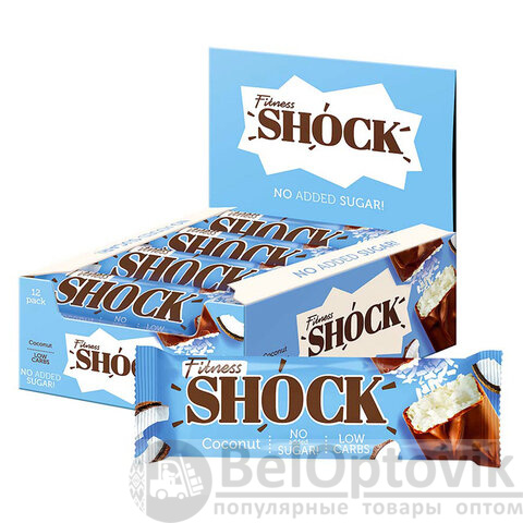 Батончик FITNESSHOCK "Cocos" ваниль-кокос, БЕЗ САХАРА, 12 шт. по 35 г в шоубоксе, 26112