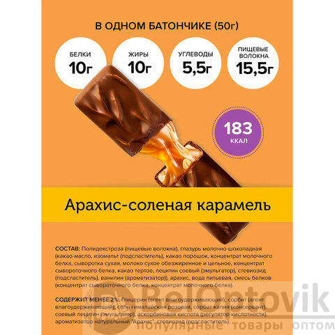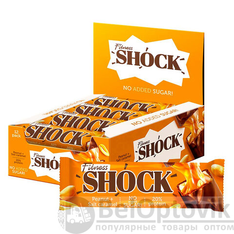 Батончик FITNESSHOCK арахис-соленая карамель, БЕЗ САХАРА, 12 шт. по 50 г в шоубоксе, 26113