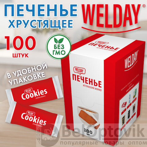 Заказывайте хрустящее печенье "Испанский Мокко" WELDAY, которое станет вашим сладким помощником на протяжении всего рабочего дня!