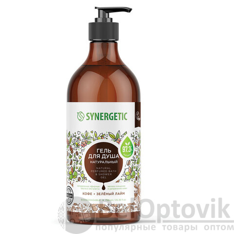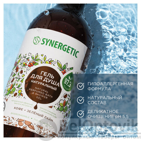 Гель для душа 750 мл SYNERGETIC "Кофе и зеленый лайм", натуральный, биоразлагаемый, 400007