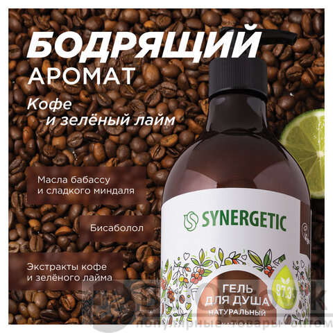 Покупайтегель для душа SYNERGETIC "Кофе и зеленый лайм" для бережного ухода за своей кожей!