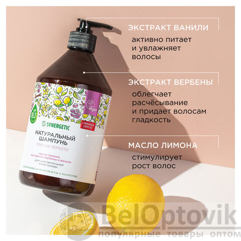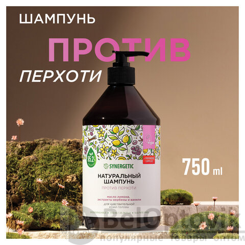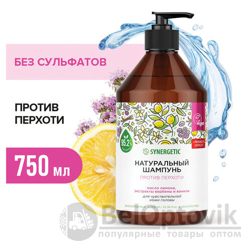 Шампунь 750 мл SYNERGETIC "Против перхоти", для чувствительной кожи головы, бессульфатный, 701757