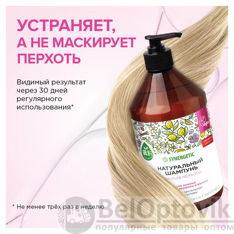 Покупайте шампунь SYNERGETIC "Против перхоти" для заботы о чувствительной коже головы!