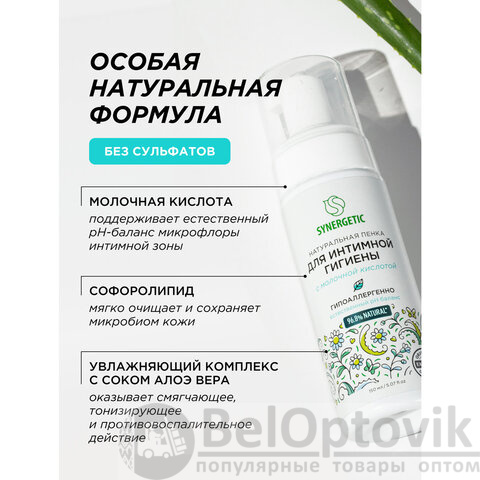 Пенка для интимной гигиены 150 мл SYNERGETIC с молочной кислотой, натуральная, 701804