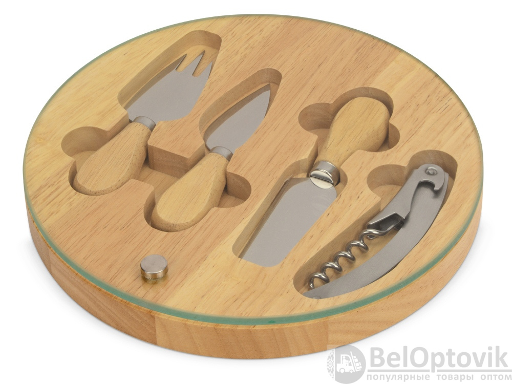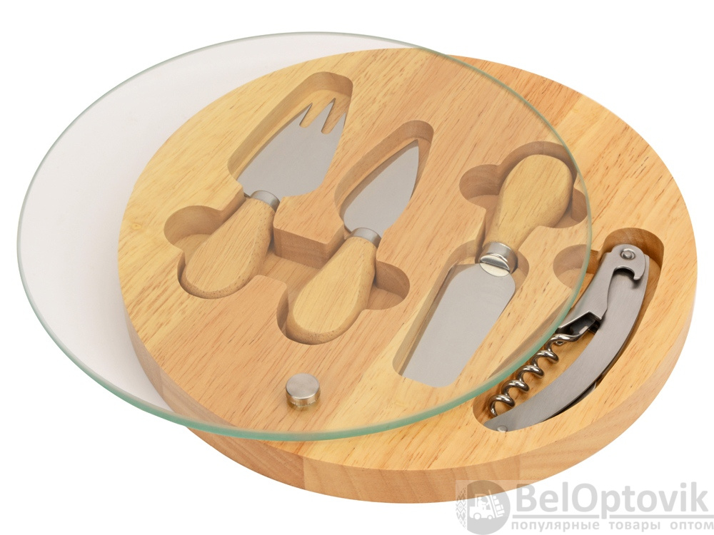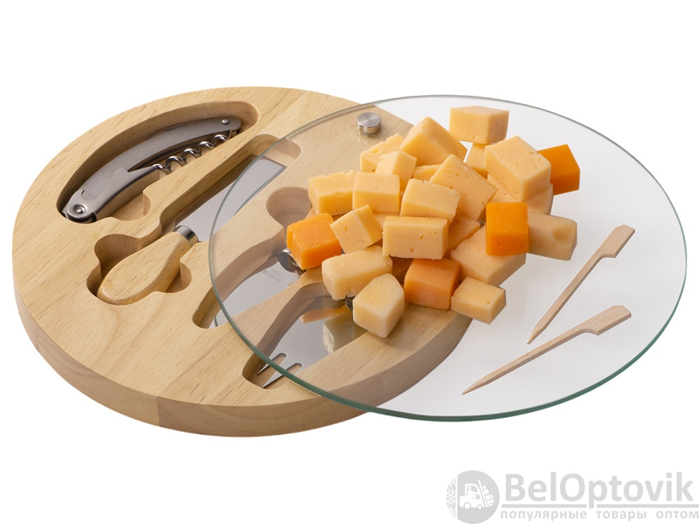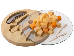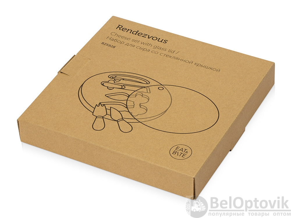 Набор для сыра и вина со стеклянной крышкой «Rendezvous», Цвет ножи- натуральный/серебристый, коробка- натуральный/прозрачный
