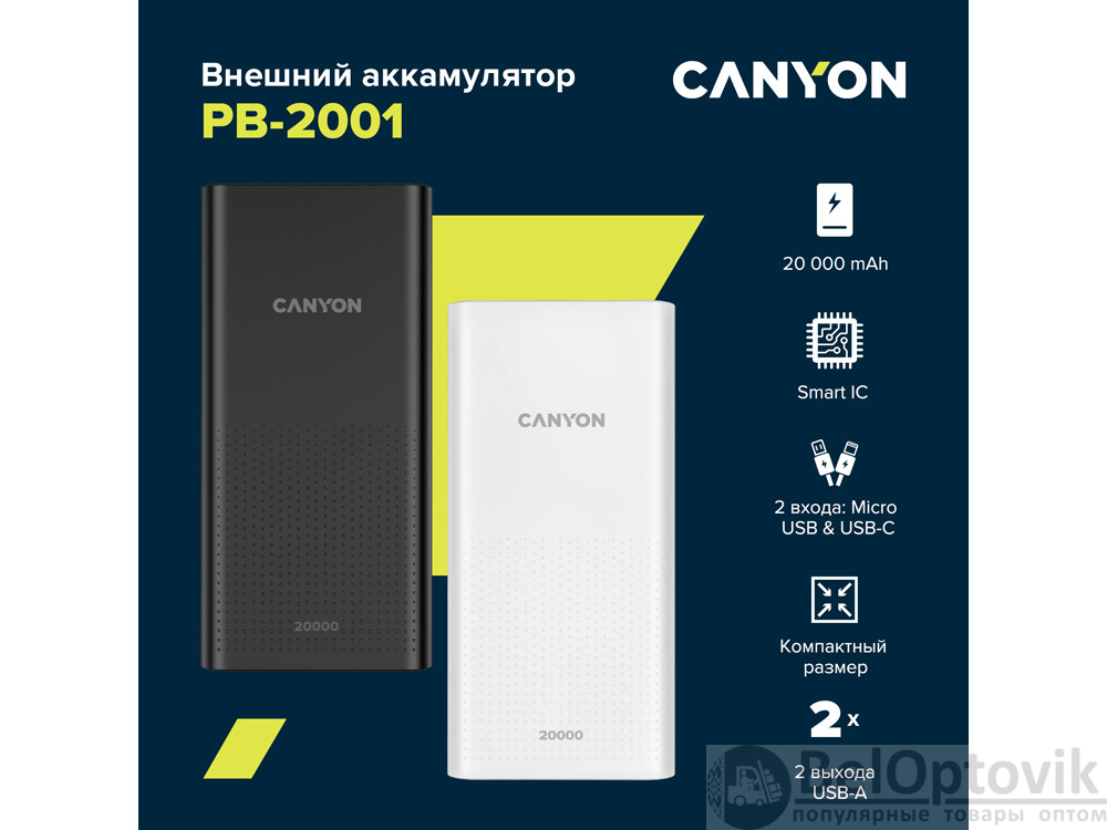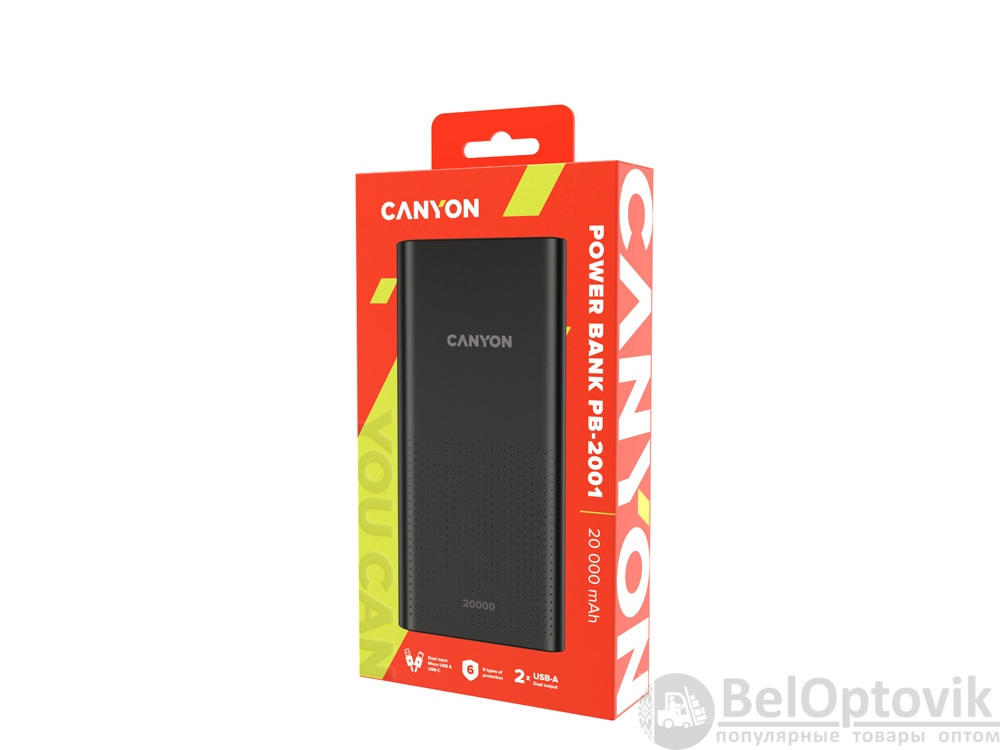 Каждый пользователь гаджетов сталкивался с проблемой — смартфон или наушники разряжаются на самом интересном месте сериала, игры или горячего диалога в чате! Чтобы вы могли пользоваться мобильным устройством в течении всего дня, не опасаясь о разряженной батарее, Canyon выпустил модель аккумулятора PB-2001. Ее отличает максимальная емкость при довольно компактном размере, а также 2 зарядных входа — Micro-USB и Type-C. Аккумулятор заряжает 2 устройства одновременно через выход USB-A. Кроме того, повербанк снабжен шестью типами защиты и облачен в стильный темно-графитовый или белый корпус. Максимум производительности и минимум места в вашей сумке!