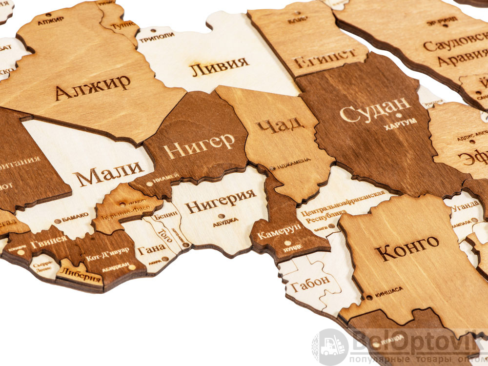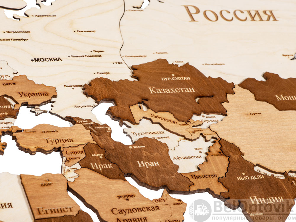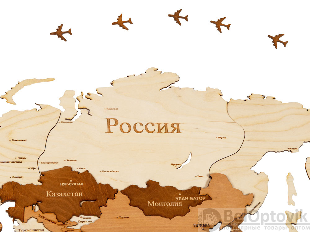 Настенная сборная карта мира из березовой фанеры — прекрасное украшение как офиса, так и квартиры. Карта крепится на стену при помощи двустороннего скотча, который уже прикреплен с тыльной стороны каждого элемента. А еще можно оживить карту корабликами и самолетами, которые тоже идут в комплекте, устремив их к тем странам, куда вы бы хотели полететь.