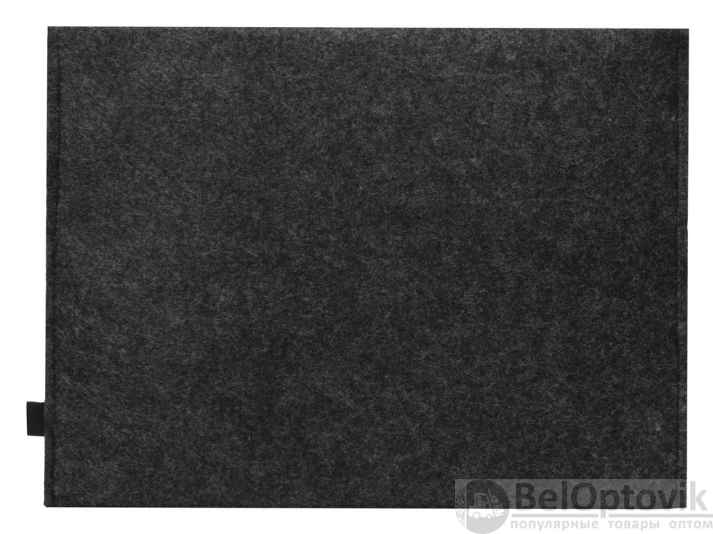 Чехол для ноутбука выполнен из фетра толщиной 3 мм. С передней стороны расположен органайзер размером 13x27 см для канцелярских принадлежностей, карт и телефона. Чехол фиксируется в закрытом виде с помощью эластичной ленты.
