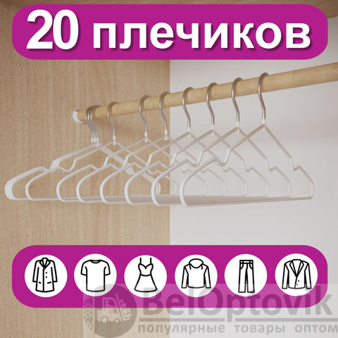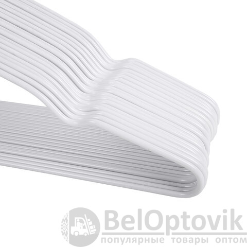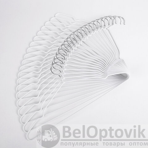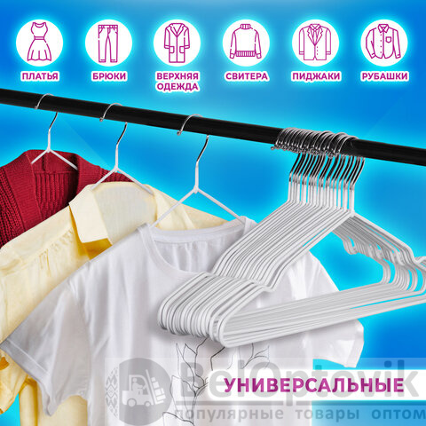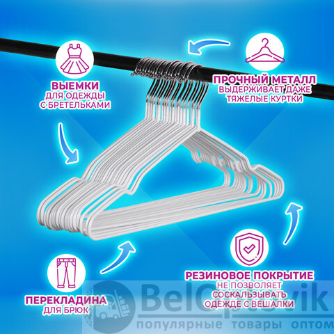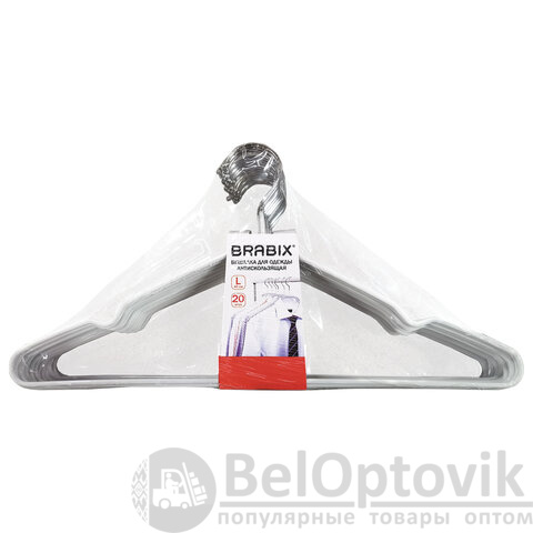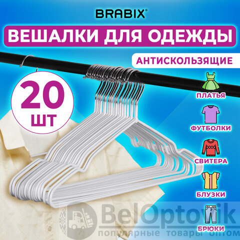 Набор из 20 прочных белых металлических вешалок BRABIX для одежды со специальным резиновым покрытием. Такое покрытие плечиков для одежды не дает одежде скользить по вешалке.