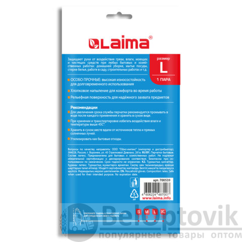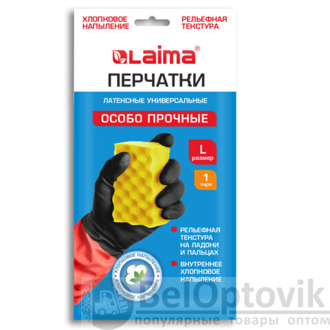 Универсальные особо прочные латексные перчатки LAIMA защищают руки от воздействия грязи, влаги, моющих и чистящих средств при любых бытовых и хозяйственных работах: мытье посуды, стирке белья, уборка, садоводческой работе и т.д.
