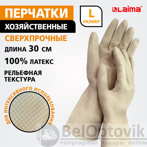 Универсальные сверхпрочные латексные перчатки LAIMA защищают руки от воздействия грязи, влаги, моющих и чистящих средств при любых бытовых и хозяйственных работах: мытье посуды, стирке белья, уборке, садоводческой работе и т.д.