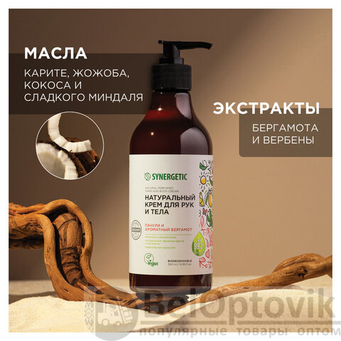 Покупайте крем SYNERGETIC "Пачули и ароматный бергамот" для бережной заботы о руках и теле!