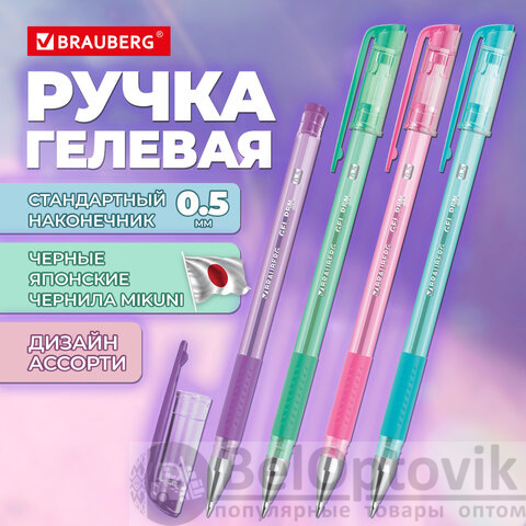 Ручка гелевая с грипом, кросс-серия PASTEL, BRAUBERG, ЧЕРНАЯ, стандартный узел 0,5 мм, линия письма 0,35 мм, 273254