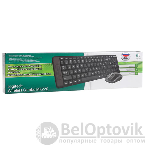 LOGITECH Wireless Desktop MK220 - беспроводной комплект, включающий компактную классическую клавиатуру с бесшумными низкопрофильными клавишами и оптическую мышь, подходящую как правшам, так и левшам.
