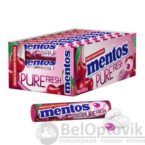 Жевательная резинка MENTOS Pure Fresh "Ролл Вишня" – это освежающая жевательная резинка без сахара с хрустящей оболочкой и жидким центром, обладающая интенсивным вишневым вкусом с нотками мяты, которая обеспечивает свежее дыхание и удобна в формате ролла.