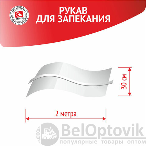 Рукав для запекания с завязкой в упаковке, 30 см х 2 м, 12 мкм, GRIFON, 101-207
