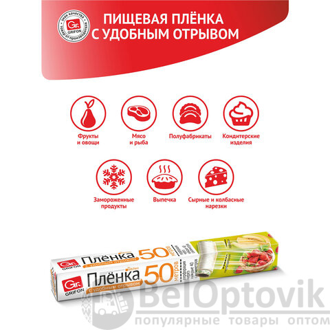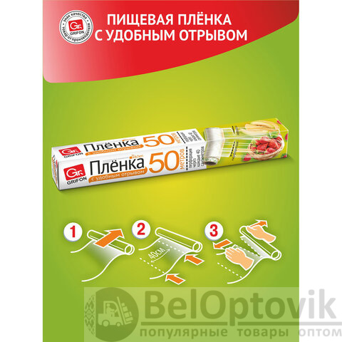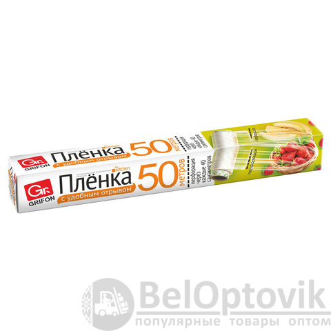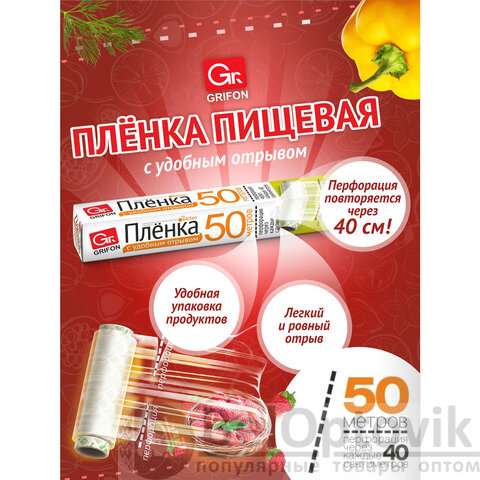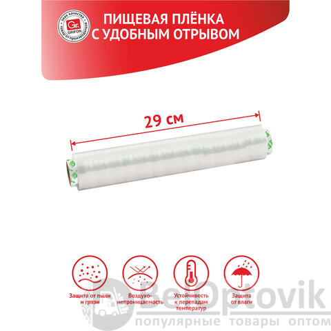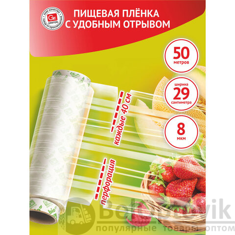 Пленка пищевая ПЭ с перфорацией отрыва, в коробке, 29 см х 50 м, 8 мкм, GRIFON, 101-434