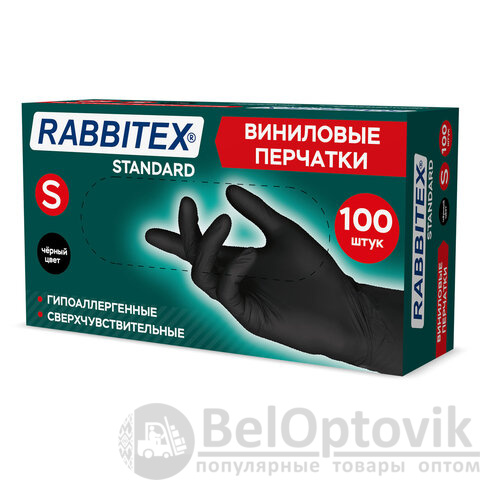 Перчатки виниловые универсальные 50 пар (100 шт), размер S (малый), черные, RABBITEX (РАББИТЕКС) Standard, 702167
