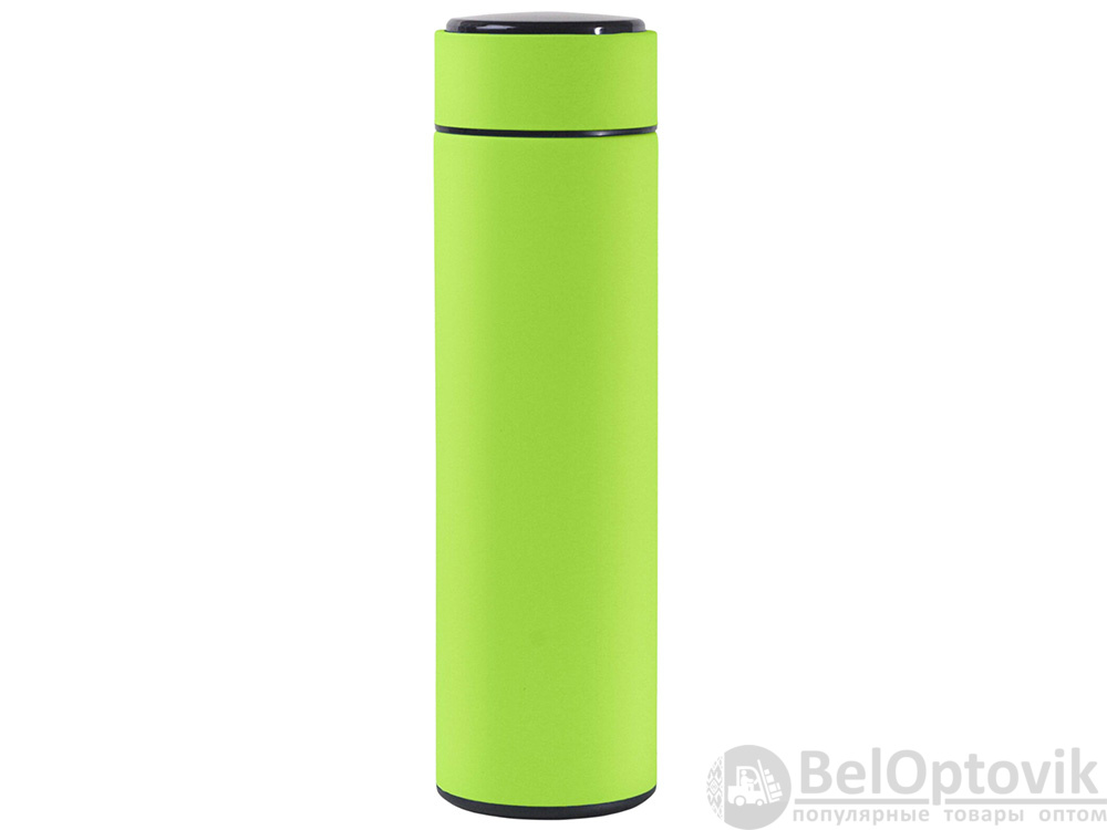 Термос из нержавеющей стали, покрытый цветным soft touch, с крышкой, в которой встроен термометр и LED дисплей, показывающий температуру внутри термоса. Объем: 500 мл. Упаковка: каждый термос в крафт коробке.