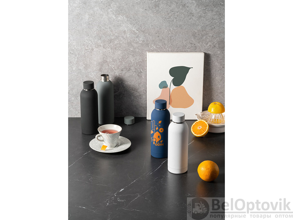 Термобутылка из нержавеющей стали с soft-touch покрытием, двойной корпус с вакуумной изоляцией и вместимостью до 550 мл.