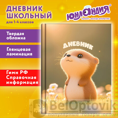 Дневник 1-4 класс 48 л., твердый, ЮНЛАНДИЯ, глянцевая ламинация, с подсказом, "Хомячок", 107579