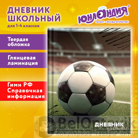 Дневник 1-4 класс 48 л., твердый, ЮНЛАНДИЯ, глянцевая ламинация, с подсказом, "Футбол", 107583