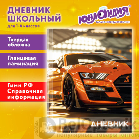 Дневник 1-4 класс 48 л., твердый, ЮНЛАНДИЯ, глянцевая ламинация, с подсказом, "Авто", 107584