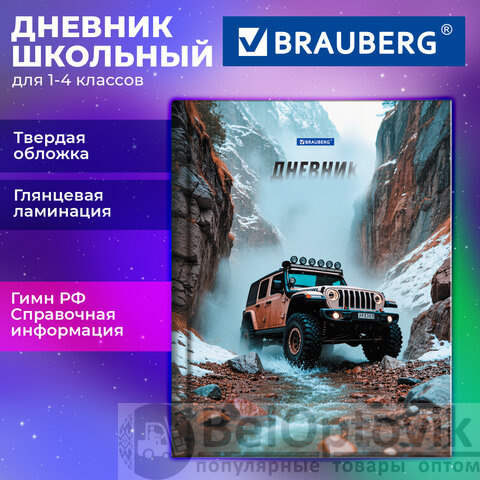 Дневник 1-4 класс 48 л., твердый, BRAUBERG, глянцевая ламинация, с подсказом, "Джип", 107586