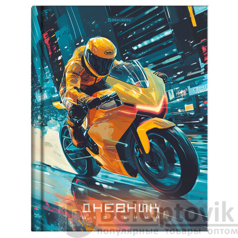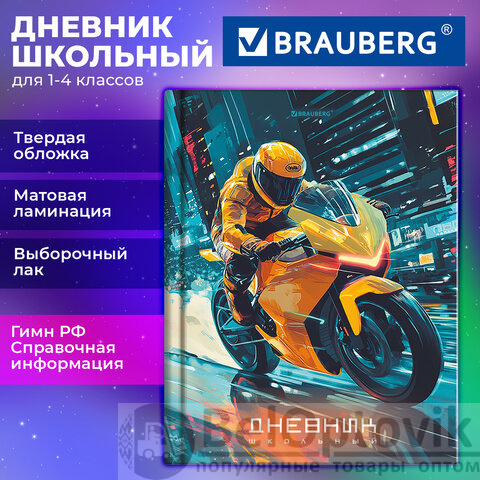 Дневник 1-4 класс 48 л., твердый, BRAUBERG, выборочный лак, с подсказом, "Крутой байк", 107592