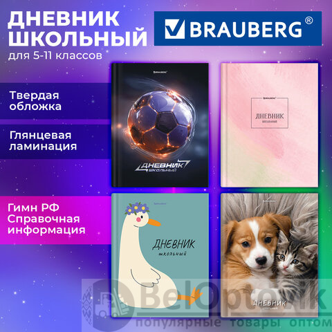 Дневник – неотъемлемый атрибут школьной жизни. Спешите приобрести стильный, качественный и функциональный дневник BRAUBERG!