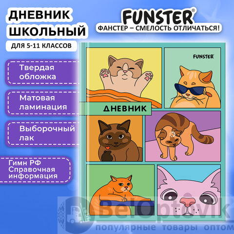 Дневник – неотъемлемый атрибут школьной жизни. Спешите приобрести стильный, качественный и функциональный дневник FUNSTER!