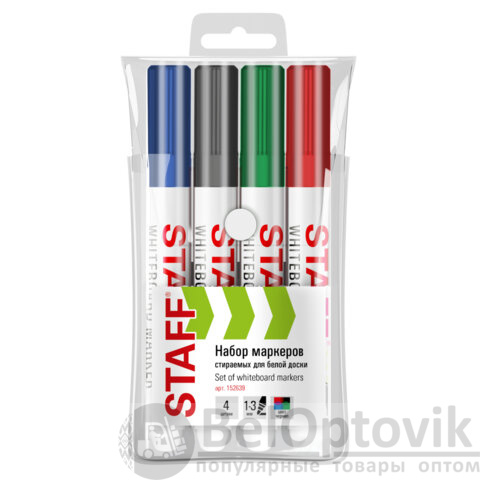 Набор маркеров STAFF "BASIC" WBM-200 – это ваш ключ к красочным и структурированным презентациям. Четыре классических цвета (черный, синий, красный, зеленый) помогут выделить главное, систематизировать информацию и визуализировать ее.