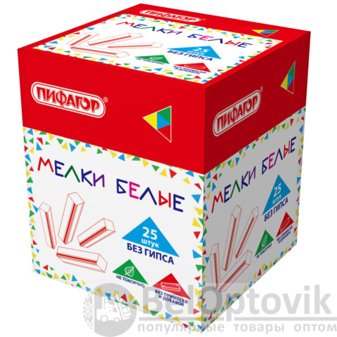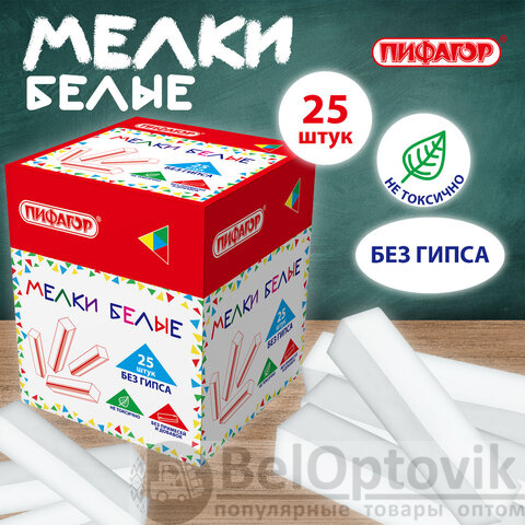 Мел белый БЕЗ ПРИМЕСЕЙ квадратный 25 штук, мягкое письмо, ПИФАГОР, картонная упаковка, 274122