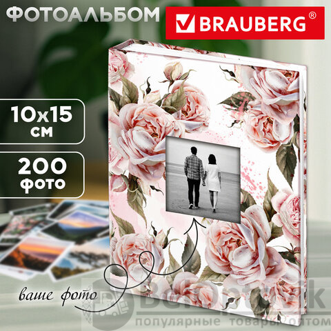 Фотоальбом BRAUBERG "Flowery love" на 200 фото 10х15 см, твердая обложка, окно под фото, 391424