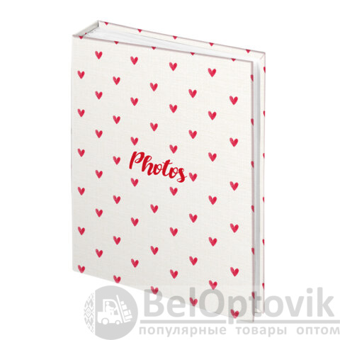 Состоит из 100 полипропиленовых листов размером 17,5х22 см с карманами и вмещает 200 фотографий размером 10х15 см по 2 штуки на странице. На обложке фотоальбома изображен принт с сердечками с имитацией льняной текстуры, а его листы склеены в единый блок. Размер – 18х23 см. Упакован в термоусадку и дополнительно в воздушно-пузырчатый пакет, который защитит фотоальбом от любых повреждений во время транспортировки.