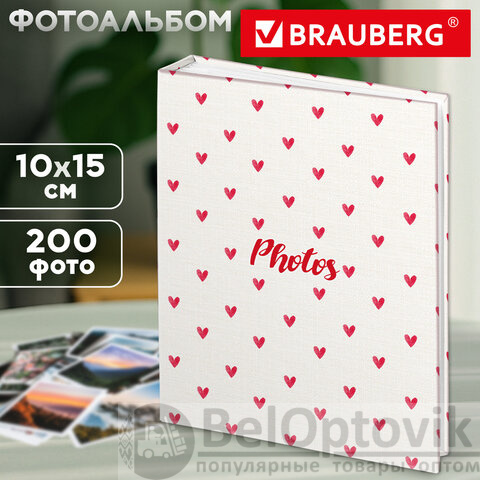 Фотоальбом BRAUBERG "Cute hearts" на 200 фото 10х15 см, твердая обложка, 391427