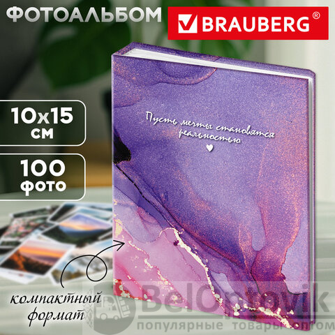 Фотоальбом BRAUBERG "Dreamy marble" на 100 фото 10х15 см, твердая обложка, 391437