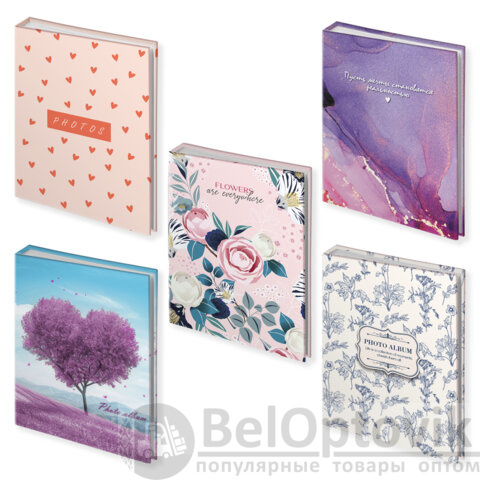 Фотоальбом BRAUBERG на 100 фото 10х15 см, ассорти 5 дизайнов, твердая обложка, 391443