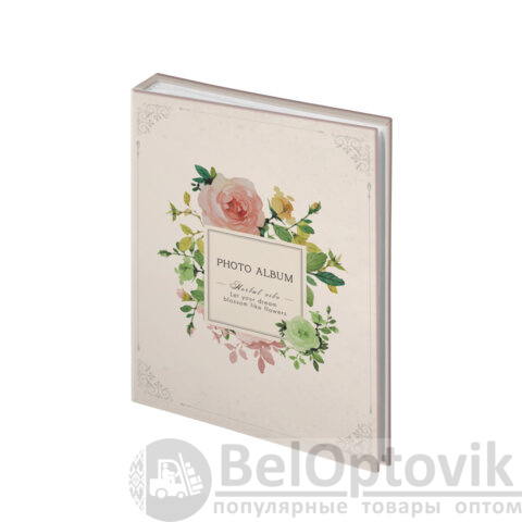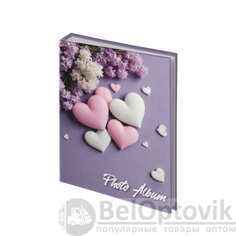 Состоит из 50 полипропиленовых листов размером 12х15,15 см с карманами и вмещает 100 фотографий размером 10х15 см по 2 штуки на странице. Обложка фотоальбома представлена в 5 дизайнах. Листы склеены в единый блок. Размер – 13х17 см.