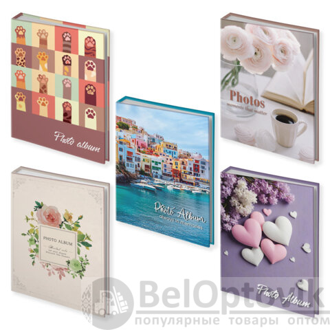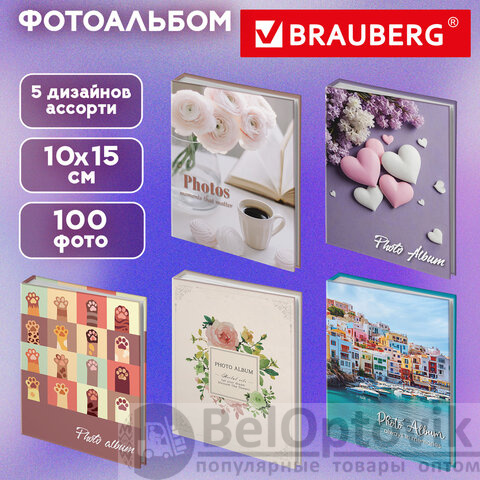 Фотоальбом BRAUBERG на 100 фото 10х15 см, ассорти 5 дизайнов, твердая обложка, 391444