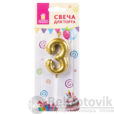 Свечи для торта являются неотъемлемым атрибутом праздника. Свеча-цифра для торта "3" ЗОЛОТАЯ СКАЗКА станет прекрасным украшением торта и других кондитерских изделий по случаю дня рождения, юбилея и любого другого торжества.
