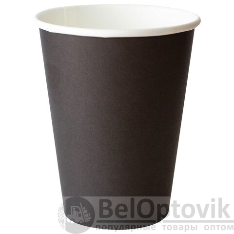 Однослойный бумажный стакан объемом 350 мл в стильном черном исполнении. Изготовлен из пищевого картона плотностью 250+18 г/м2 с безопасным полимерным покрытием для полной влагостойкости. Специальная краска устойчива к истиранию и не оставляет следов на губах.
