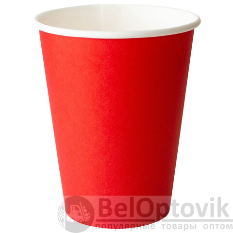 Однослойный бумажный стакан WELDAY объемом 350 мл в насыщенном красном цвете.
