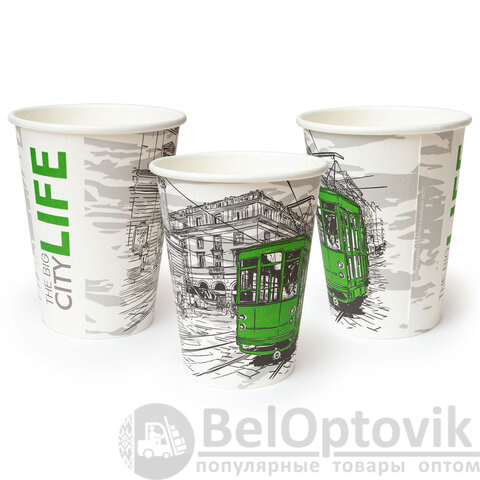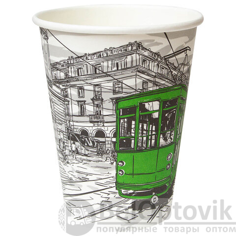 Однослойный бумажный стакан WELDAY объемом 300 мл в уникальном дизайне "ГОРОД".