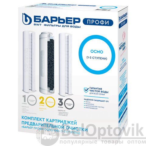 Комплект сменных картриджей БАРЬЕР "ПРОФИ Осмо Предфильтр" – это надёжная защита для мембраны обратноосмотического фильтра, обеспечивающая её долгую и эффективную работу.